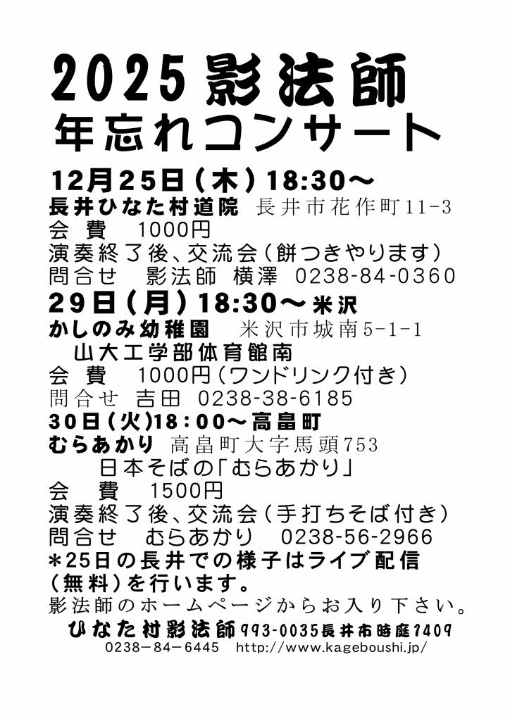 2025年 影法師 年忘れコンサート